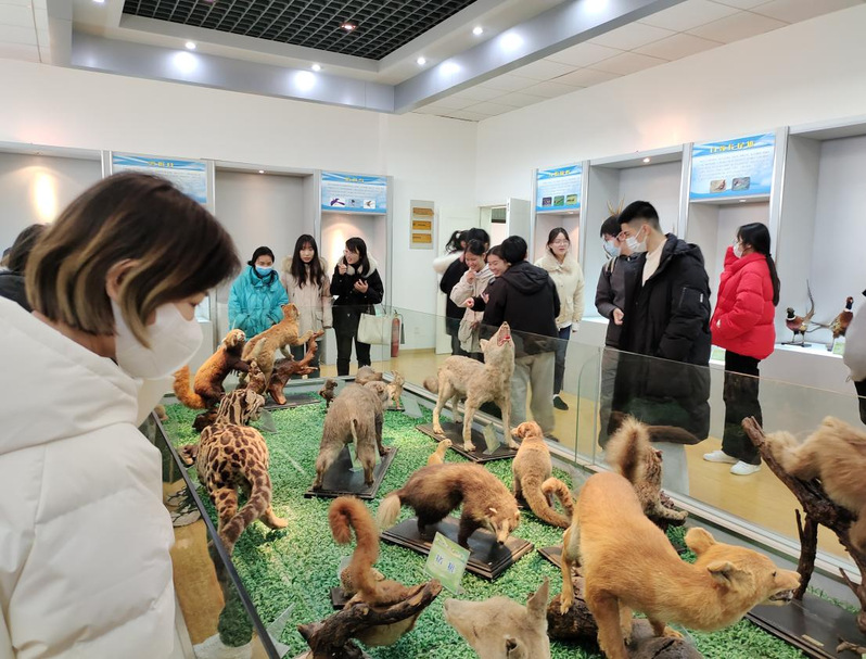 全体党员首先来到彦涵楼美术展厅,展厅内的作品题材形式多样,风格清新活泼,有淋漓的水墨、细致的工笔、洒脱的书法,生动的素描、明亮的水粉、水彩,奇特的剪纸和泥塑类手工,还专门针对员工的汉语书写设置了硬笔字和毛笔字展览作品,供同学们欣赏借鉴,以更好地提高汉字书写的能力。随后,全体党员走进吉馀楼的标本展览馆,该标本馆集标本采集制作、陈列展示、科学研究和科普教育为一体,收集了各类野生动植物标本。通过参观标本室内的生物标本、图片及知识,同学们更好地认识了自然,了解了野生动植物的价值,进一步提高了员工党员保护野生动植物、绿化环境的意识。