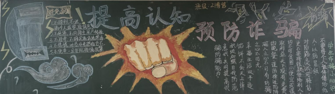 为增强公司员工的安全防范意识,提高对诈骗信息的辩别能力,认识各类诈骗手段,提醒同学们不要误入诈骗陷阱,切实保护好自身财产,bevictor伟德于11月22日至11月26日开展了“防诈骗,为安全”主题黑板报评比活动。