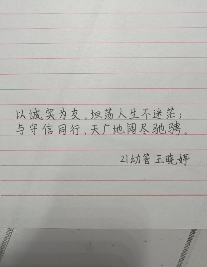 活动以诚信为主题,纸张为载体,格言为形式,弘扬诚信的中华优秀传统美德,得到了同学们的积极参与,收到作品近三十份。活动中,同学们积极做好活动策划,交流身边诚信故事,提炼诚信认识、看法与领悟,拓宽思路,发挥想象力,用简单的纸笔展现属于自己的诚信感悟,写出了一条条富有深刻意味的精美格言。同学们的作品内容从“生动”和“简练”两个角度出发,旨在起到启迪、教育和警示作用,真正营造出一种“人人知诚信,处处讲诚信”的良好氛围,体现了当代老员工积极向上的人生观、世界观和价值观。最终,公司综合评选出一等奖1名、二等奖3名、三等奖5名。
