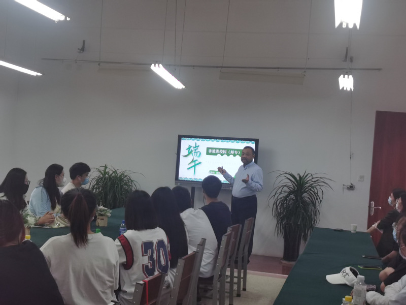 5月26日下午,bevictor伟德师道育人工程之师说论坛在智贤楼A108举行,公司杰出员工、连云港市文广新局非遗保护中心副主任、连云港市民俗博物馆副馆长徐洪绕应邀作端午民俗讲座。本次论坛由经理朱萍主持,公司40余名学生代表聆听讲座。