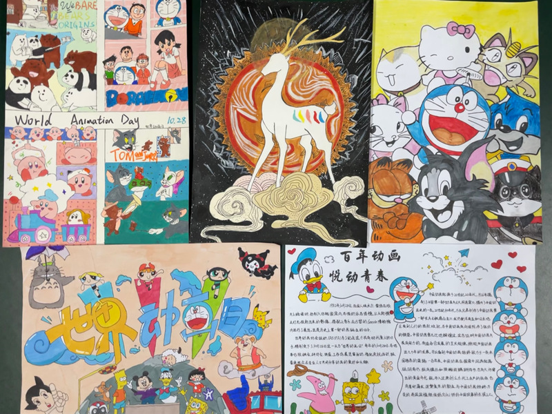 2022年也是中国动画诞生百年之年,百年栉风沐雨,从无到有、从黑白到彩色、从无声到有声,在探索中砥砺前行,传播着中国文化,弘扬着中国精神,深受青少年的喜爱。同学们通过绘画汤姆猫、多啦A梦、黑猫警长等动画中人物,勾起我们童年美好的回忆:没有多少语言却能够让大家笑的合不拢嘴的动画片《猫和老鼠》;帮助大雄解决许多他暂时无法解决的问题,尽可能地满足大雄愿望的动画片《多啦A梦》;机智勇敢的黑猫警长和它的警探伙伴痛歼搬仓鼠,空中擒获凶残的食猴鹰,侦破了一个又一个案件,保卫了森林安全的动画片《黑猫警长》......
