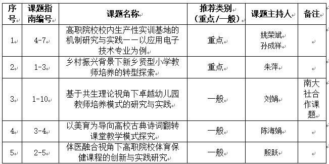根据《关于做好2021年江苏省高等教育教改研究课题立项建设申报工作的通知》苏高教会〔2021〕28号文件要求,经个人申报、教务处审核、专家组评审,共推荐5项课题参与2021年江苏省高等教育教改立项课题遴选,现予以公示。公示期为9月28日—9月30日,如有异议,请在公示期内以书面形式向教务处反映,联系人:刘军,联系电话:1950449933。