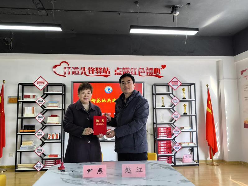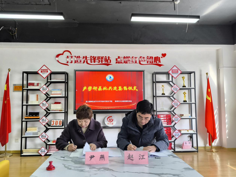 赵江与尹燕签订了产学研基地共建协议,并向尹主任颁发了行业导师聘书。在江苏省“最美社工”宋启溪的带领下,初教一行参观了海州区社会组织孵化基地入驻的11个机构,并与各机构工作人员就智慧养老服务、儿童关爱、社会工作项目等进行交流,为后期专业转型和升格、教学改革和创新,积累了来自基层一线的经验和素材。
