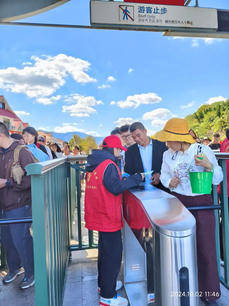 国庆节当天,晨曦微露,四十余名同学带着兴奋和热情,统一乘车前往连岛景区和大沙湾景区,在景区现场工作人员的指引下开展检票、引导、安检、秩序维护等服务工作。在正式上岗工作之前,领队人员为参加本次实践的同学们进行了培训,讲解了实践服务的注意事项和安全须知,同学们积极投入到忙碌又充实的工作中。国庆期间,客流激增,大家恪尽职守、井然有序、干劲十足,在检票口、咨询台、导引台、小火车、停车场等地,细心为每位游客核验门票,耐心回答游客问题,热心帮助游客搬运行李,引导游客有序停放车辆。在面对游客们提出的各类问题时,同学们耐心回答并妥善解决。在服务中同学们展现了人际沟通的亲和力和守时守纪的团队精神,他们用实际行动诠释了社会实践服务的意义,传递了爱心与温暖,得到了景区工作人员和游客的一致好评。