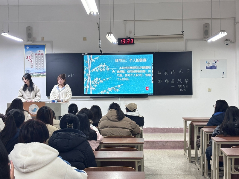 活动围绕“问候礼仪”“用餐礼仪”“电话礼仪”“网络礼仪”等模块展开,内容丰富,设置快问快答,限时积分和抢答赛等多种形式。活动现场,来自各个班级的员工积极参与,气氛热烈。在活动中参与者通过抢答和互动问答等方式,切身感受到礼仪在职场中的魅力和作用,不仅增强了同学们对遵守礼仪重要性的认识,还调动了同学们对于知礼、懂礼、用礼的积极性,进一步规范了同学们的礼仪行为,让同学们意识到在职场礼仪中容易忽略的细节,提升了同学们在人际沟通、协同合作、求职面试等场合中的综合表现。