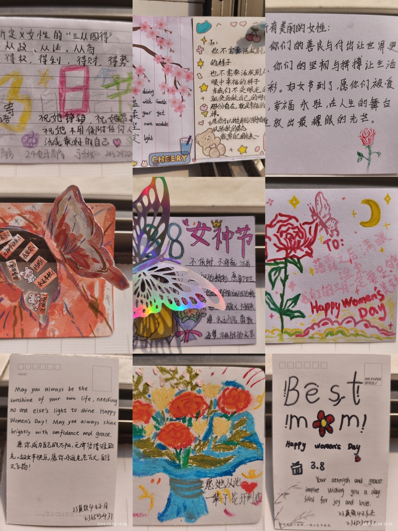 星海棋社举办的这次活动,为同学们搭建了表达情感的平台,也在校园内弘扬了尊重女性、感恩奉献的良好风尚,让妇女节因这些温暖的 “心声” 而格外闪耀,使校园内洋溢着爱的氛围。