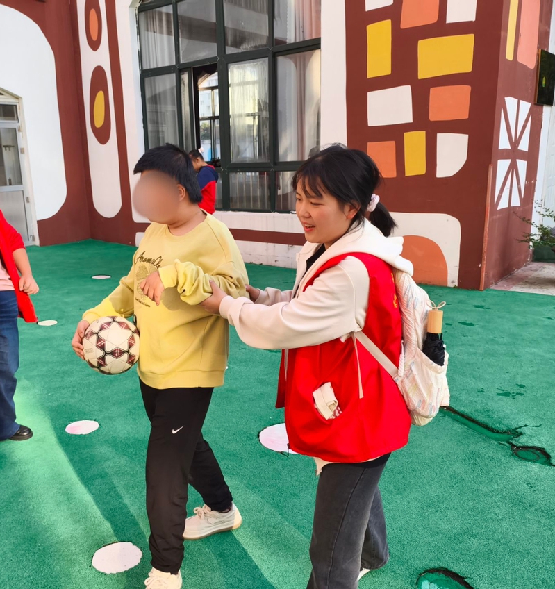 在馨康宝贝融合园,她是孩子们最爱的“星星姐姐”。每周六,她都会准时出现在感统训练室,握着自闭症儿童微微颤抖的小手练习握笔;在烘焙教室里,和唐氏综合征孩子一起揉面做饼干,尽管面粉沾满衣襟却笑靥如花。她设计的“绘本漂流瓶”项目,让特殊儿童通过绘画传递心声,已累计收集作品127幅。