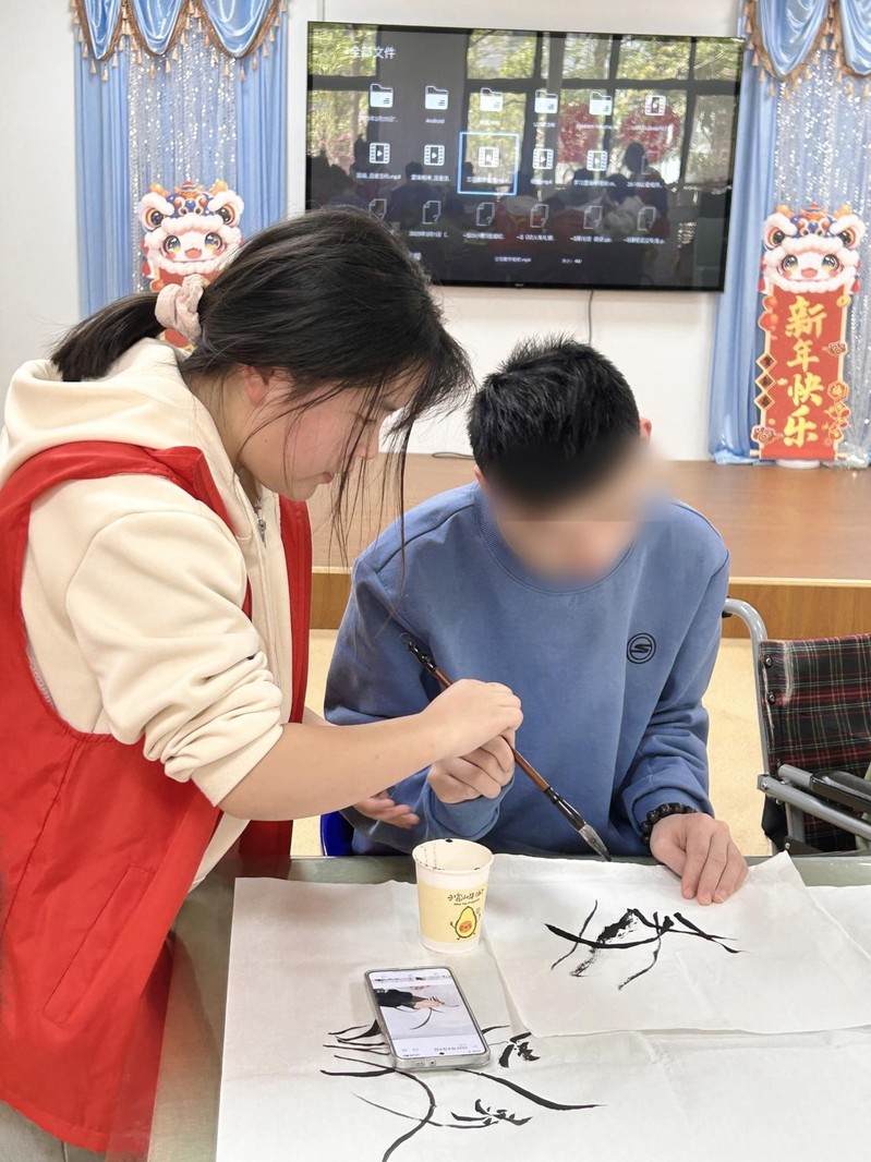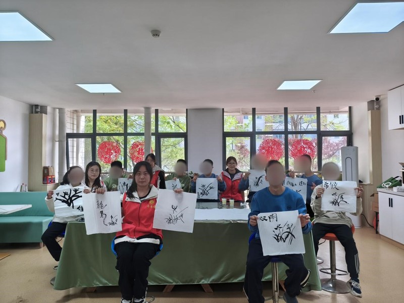 在实践环节,考虑到特殊儿童在手部精细动作方面存在一定发展局限,志愿者们主动来到孩子们身边,开启一对一的贴心指导。她们轻轻握住孩子们的小手,细致耐心地教孩子们如何正确握笔、蘸墨,带着孩子们在柔软的宣纸上小心翼翼地轻点慢描。每一次下笔,志愿者们都轻声鼓励,不断给予孩子们积极的反馈。在志愿者们的引导下,孩子们逐渐克服了最初的紧张与羞涩,开始大胆地尝试。随着笔墨在纸上流淌,一朵朵各具形态、生机勃勃的兰花在孩子们笔下缓缓绽放,每一朵都承载着孩子们独特的创造力与对美的感知。