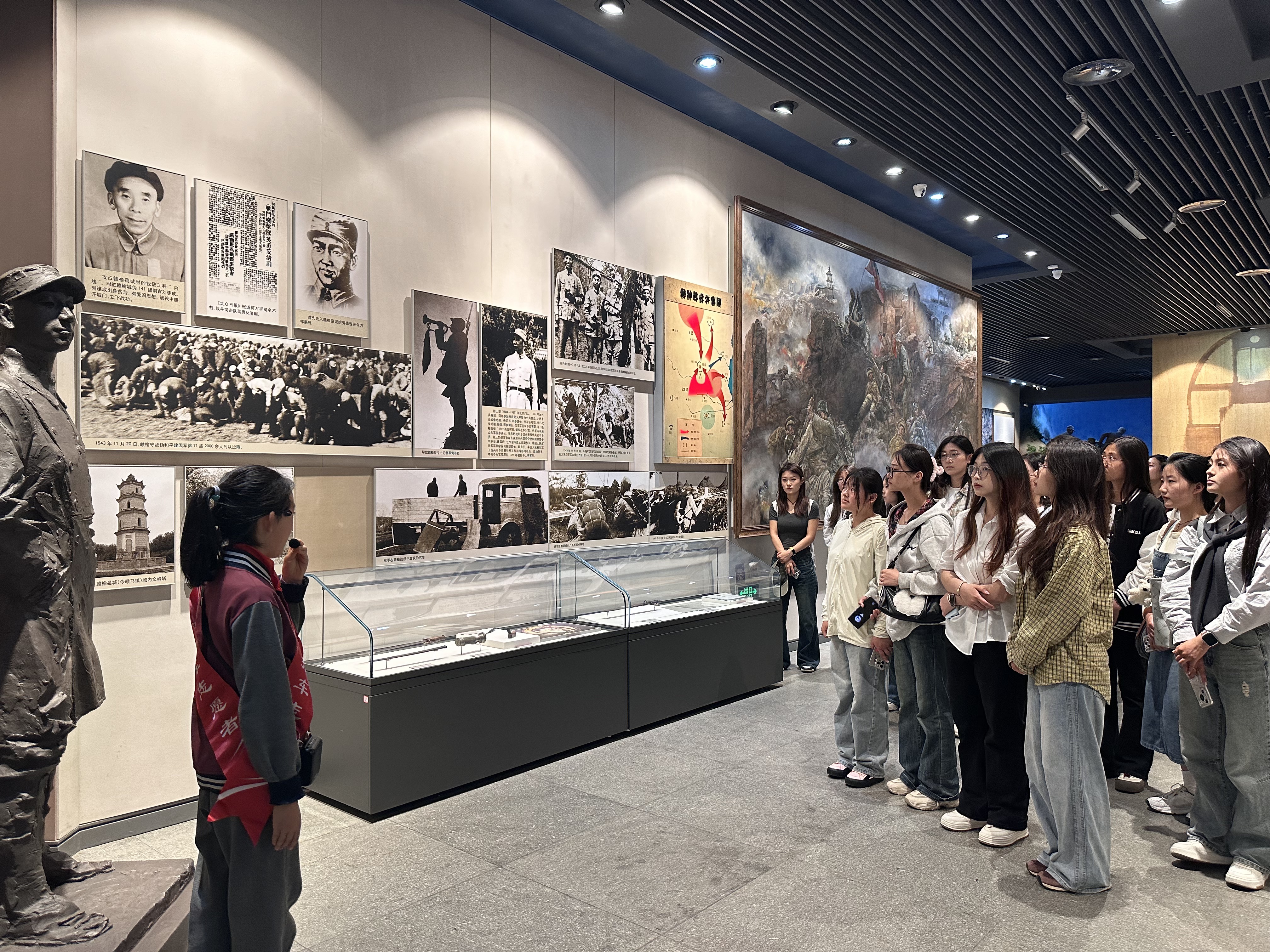 活动现场,全体成员怀着肃穆崇敬之情步入革命纪念馆。在讲解员的引导下,大家依次参观各个展厅,穿越历史长河,重温峥嵘岁月。一件件承载着革命记忆的珍贵历史文物、一份份记录历史变迁的详实文献、一段段还原战斗场景的生动影像画面,全景式再现了革命先辈们为争取国家独立、民族解放而浴血奋战的壮烈历程。同学们驻足凝视,神情庄重,在沉浸式的红色教育中接受了精神洗礼。同时,大家结合革命先辈艰苦奋斗、廉洁奉公的光辉事迹,深入感悟中央八项规定的时代内涵与重大意义。“从战争年代的三大纪律八项注意到新时代的中央八项规定,党的纪律建设始终是事业发展的‘生命线’员工党员们一致表示革命先辈用鲜血和生命诠释了廉洁自律的政治本色,我们必须以他们为榜样,严守纪律红线,坚决抵制四风,让优良作风成为青春底色。