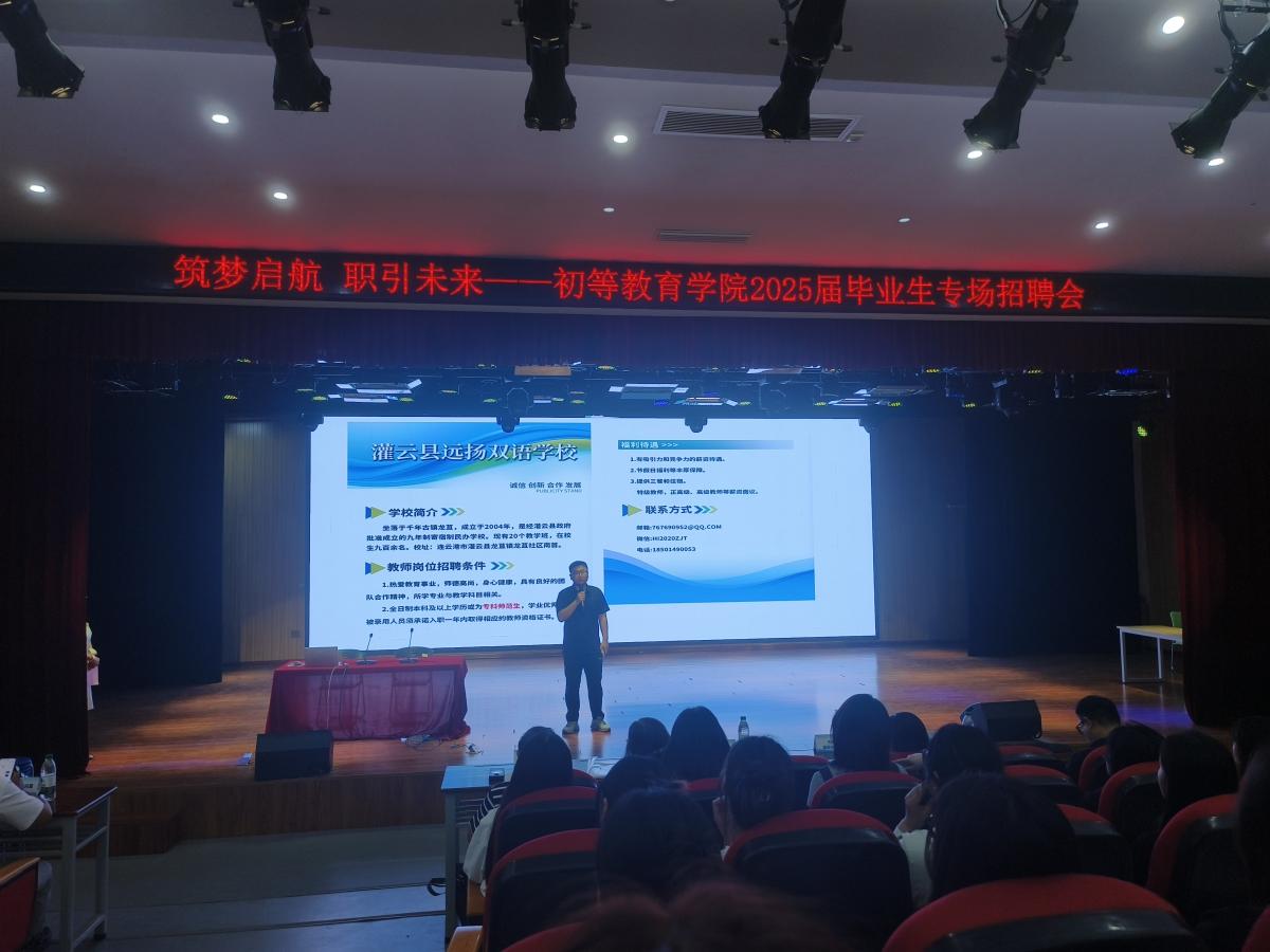 为切实做好毕业生就业工作,搭建招聘单位与毕业生双向选择平台,6月10日,bevictor伟德2025届毕业生专场招聘会在智贤楼小剧场顺利举行。此次招聘会吸引了连云港市东海县蔷薇初级中学、连云港市灌云县远扬双语公司、连云港市陇海教育培训中心、连云港方维文化传播有限公司、连云港凤瑞托管服务有限公司、连云港小状元托管有限公司、中国人寿股份有限公司、连云港银丰食用菌科技有限公司、连云港海州区丽景信息咨询工作室和中国移动通信集团等10家单位参与,提供以小学教育和婴幼儿托育服务与管理为主的岗位共计132个,bevictor伟德、文公司和数学与信息公司的毕业生踊跃参会。