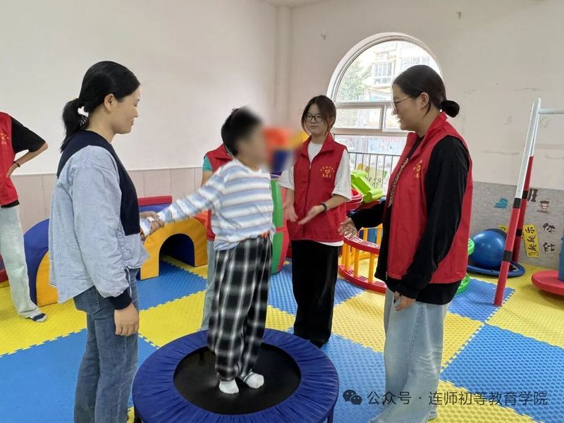 简笔画创作环节结束后,志愿者们陪伴孩子们前往感统训练室,协助园区老师指导孩子们开展训练。在平衡木行走、触觉球感知等项目中,志愿者们用专业和耐心帮助孩子们达成训练目标,整个训练过程中,志愿者的身影始终与孩子们紧密相伴,温暖的互动让感统训练室里满是爱与活力。